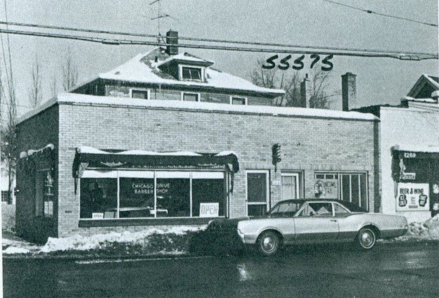 Chicago Drive Barber Shop at 1273 Chicago Drive SW in 1970 (Ed’s Barber Shop next to Hansen’s Drug Store)